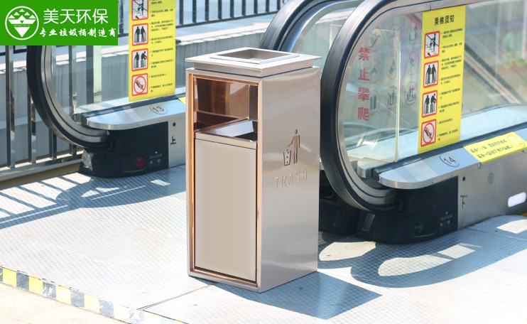 - 說明: 說明:由不銹鋼裁剪、壓制、折彎后再焊接而成型,桶身采用防指紋技術處理,導軌推拉取桶設計,特別適合商場,辦公樓,酒店大堂等場合使用。